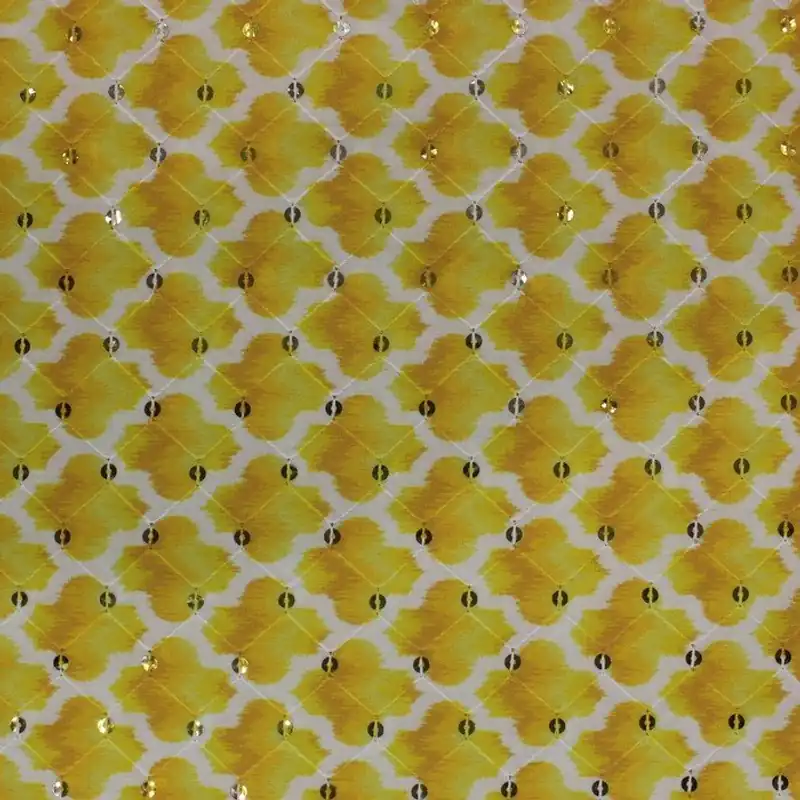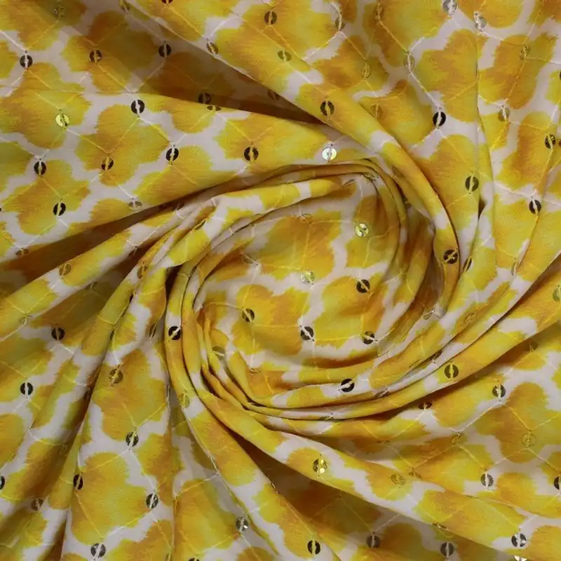 Sadev Fabric Yellow Abstract Print With Sequins (rt-1209) – 2.5 Mtr